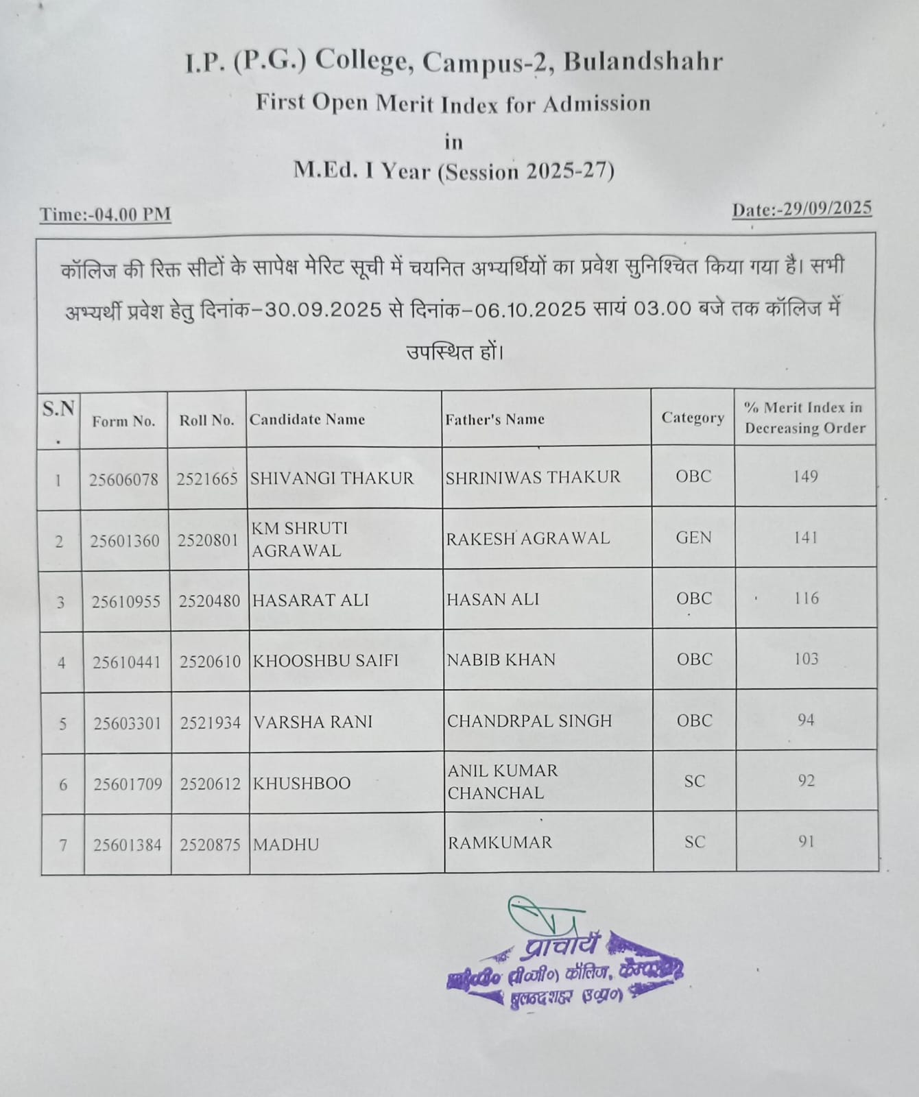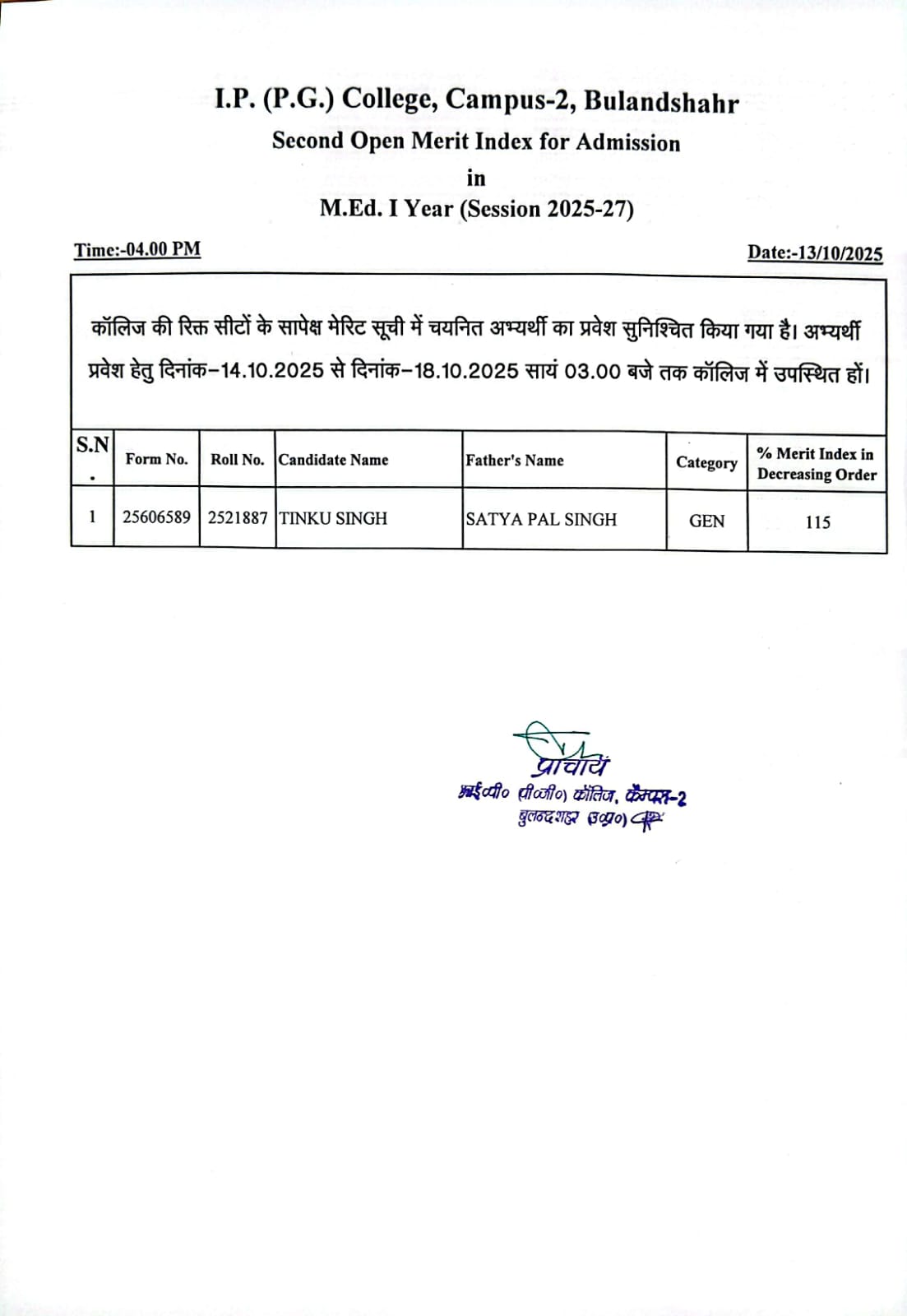 Admission 2025-26 Details